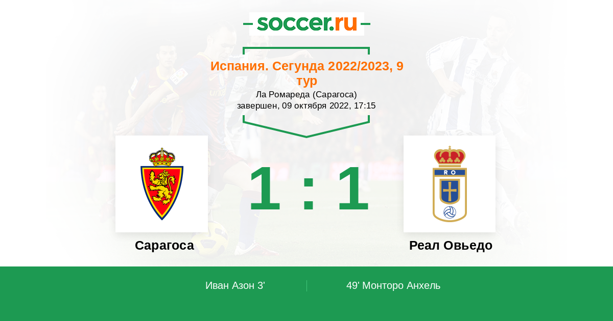 Протокол матча Сарагоса против Реал Овьедо