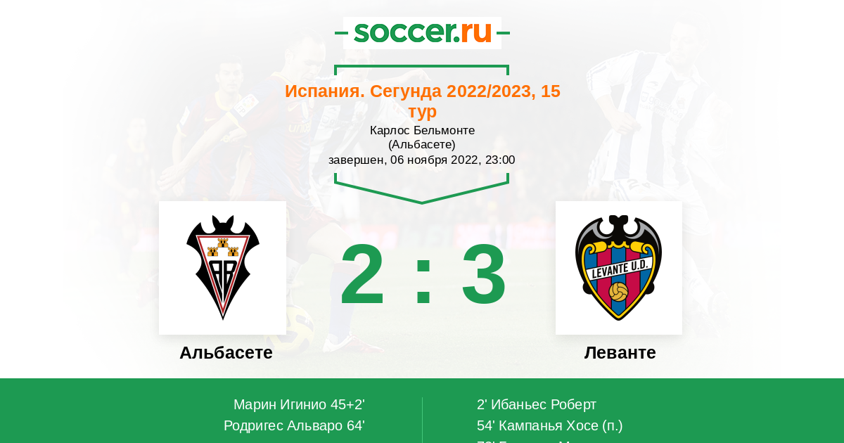 Протокол матча Альбасете против Леванте