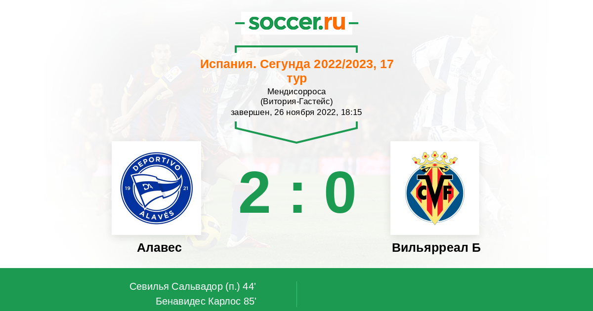 Протокол матча Алавес против Вильярреал Б