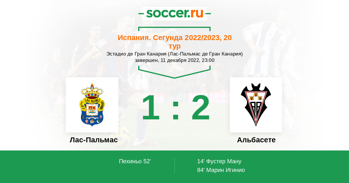 Протокол матча Лас-Пальмас против Альбасете