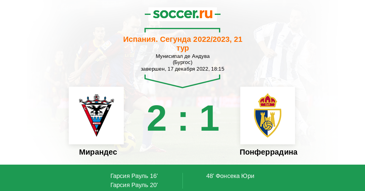 Протокол матча Мирандес против Понферрадина