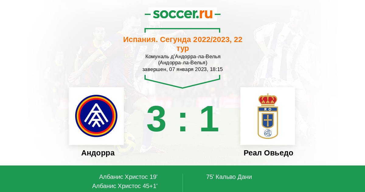 19' (1:0) Албанис Христос (19) (Молина Серхио (14))