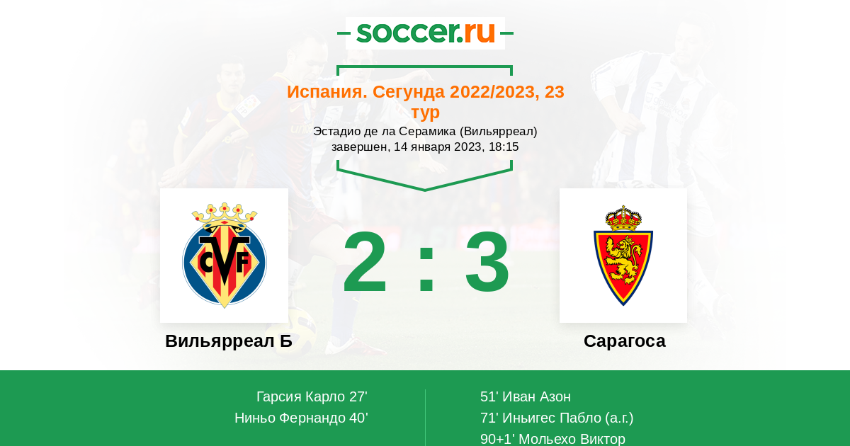 Протокол матча Вильярреал Б против Сарагоса