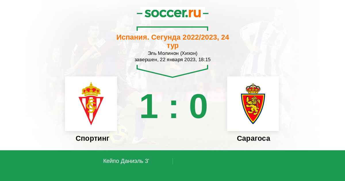 Протокол матча Спортинг против Сарагоса