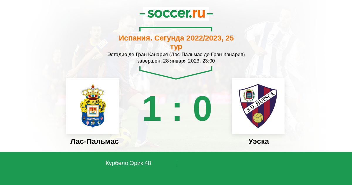 Протокол матча Лас-Пальмас против Уэска