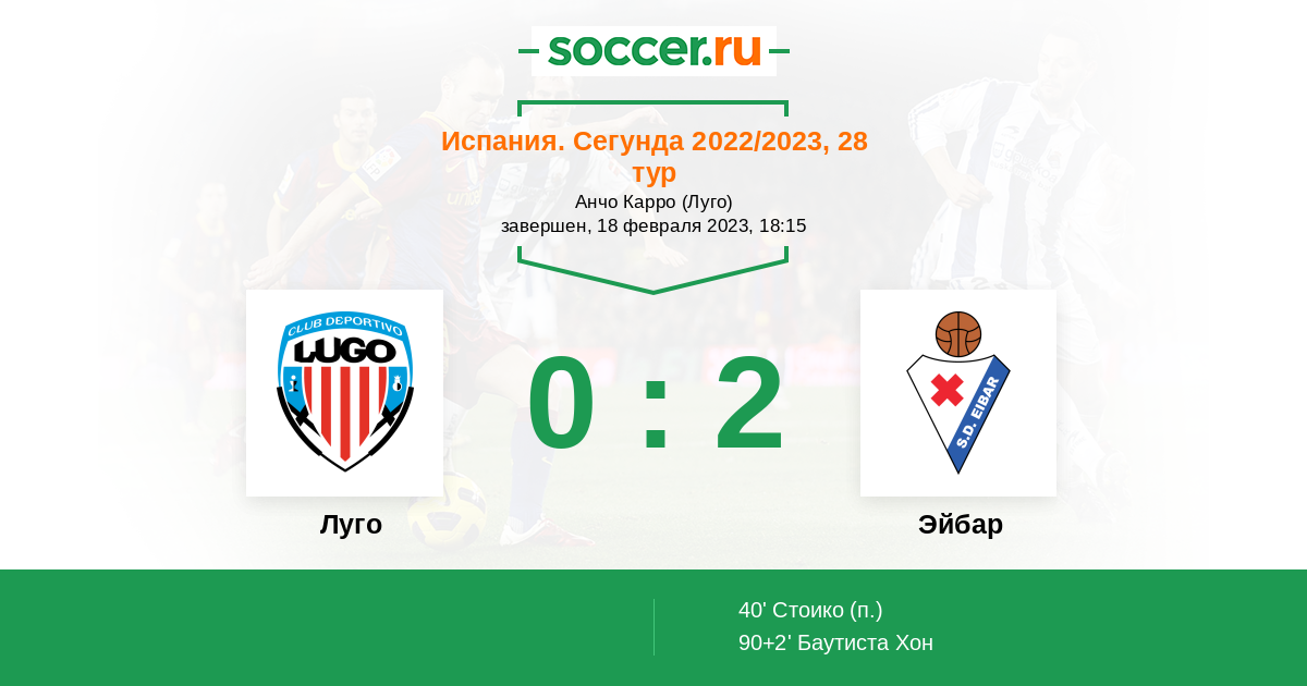 Протокол матча Луго против Эйбар