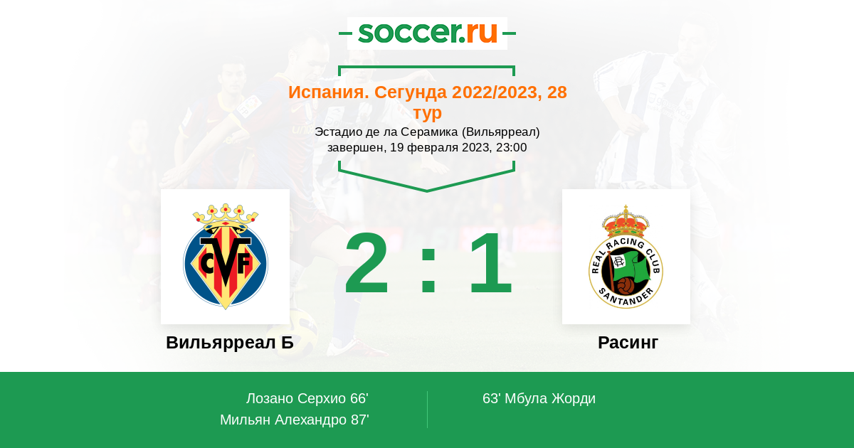 Протокол матча Вильярреал Б против Расинг