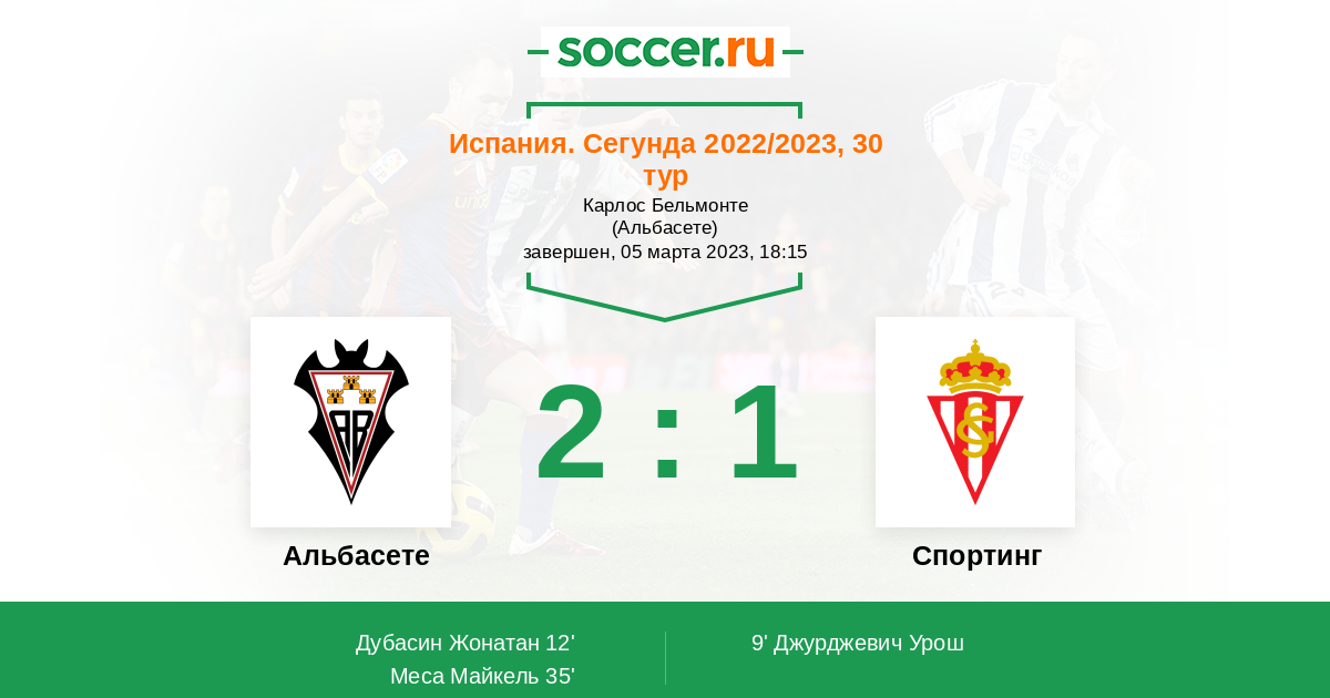 Протокол матча Альбасете против Спортинг