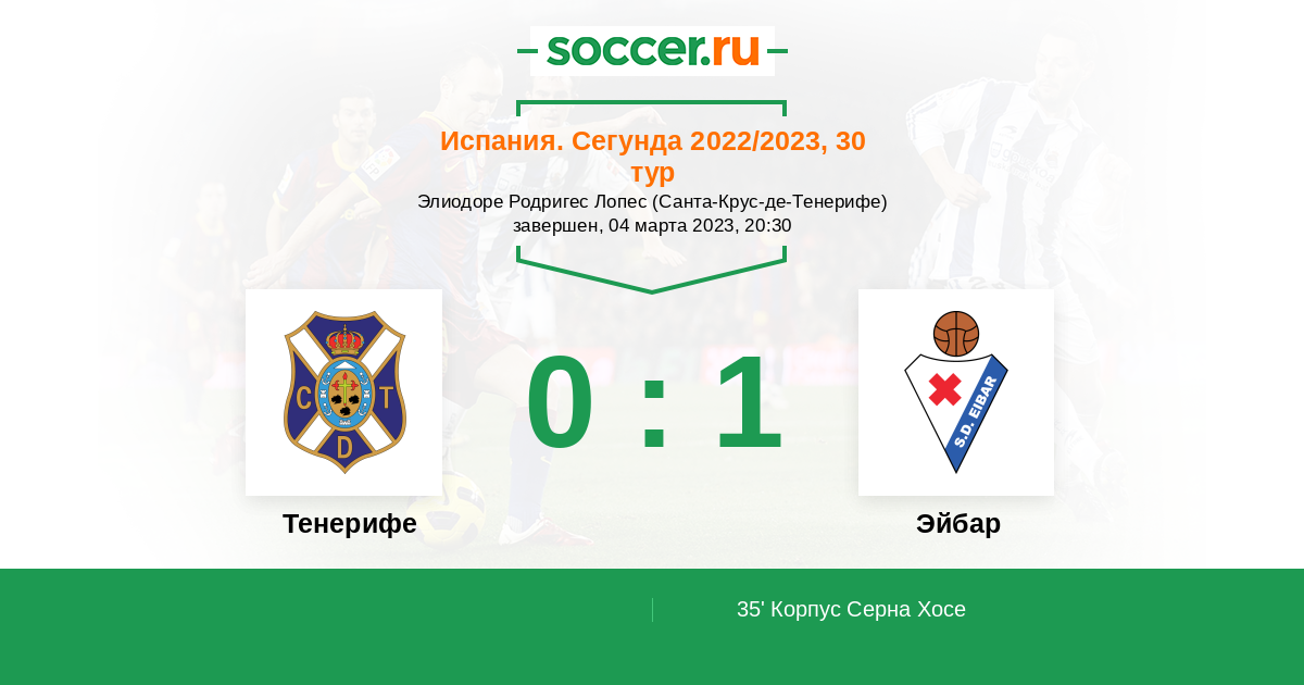 Протокол матча Тенерифе против Эйбар