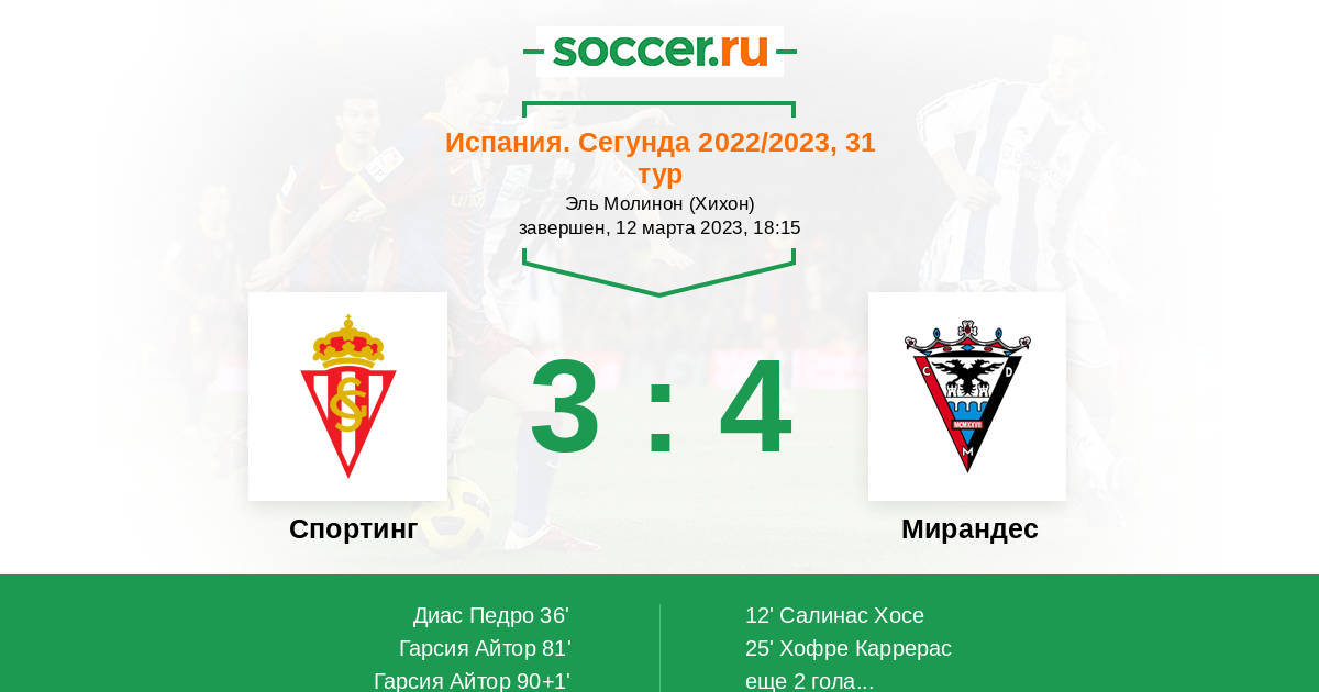 25' (0:2) Хофре Каррерас (22) (Гарсия Рауль (9))
