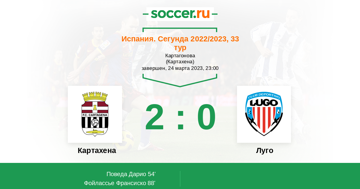 Я думаю что в этом противостоянии более чем явным фаворитом на победу выглядит команда хозяев поля Картахена , но уж очень мало забивает и наврядли в этом матче будет забито много мячей и ТМ 2.50 . Минимальная победа хозяев поля или ничья .