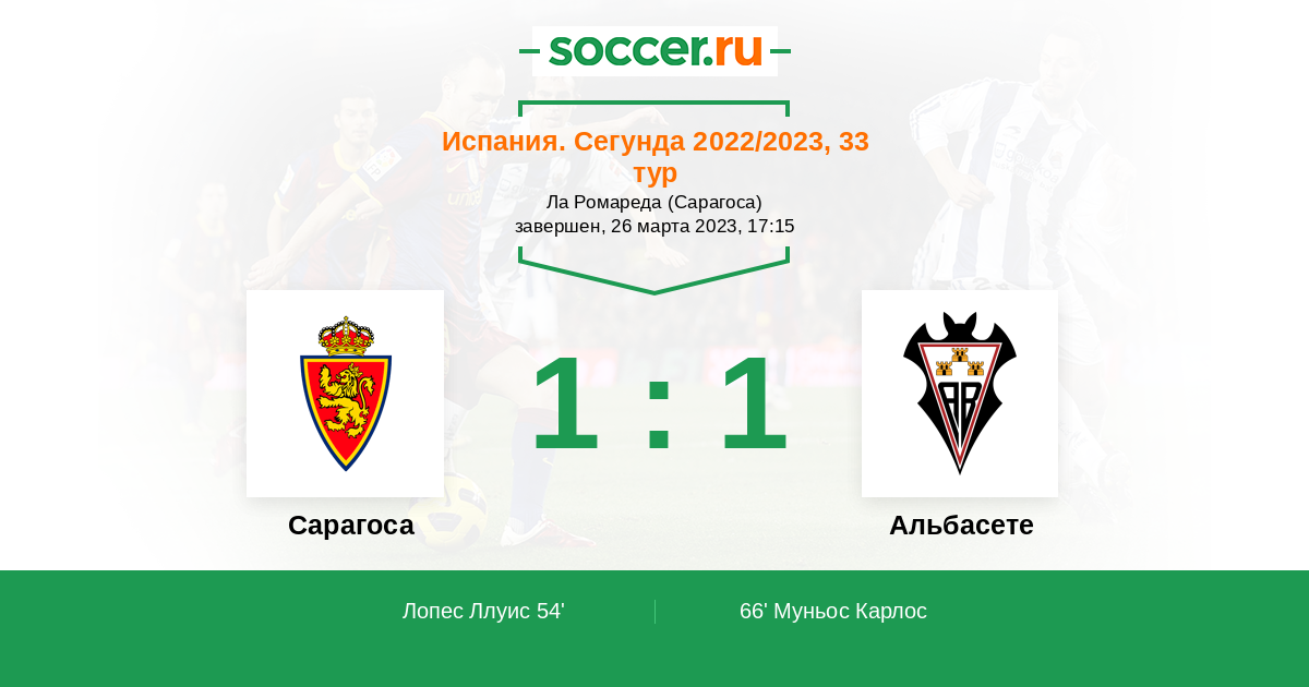 Протокол матча Сарагоса против Альбасете