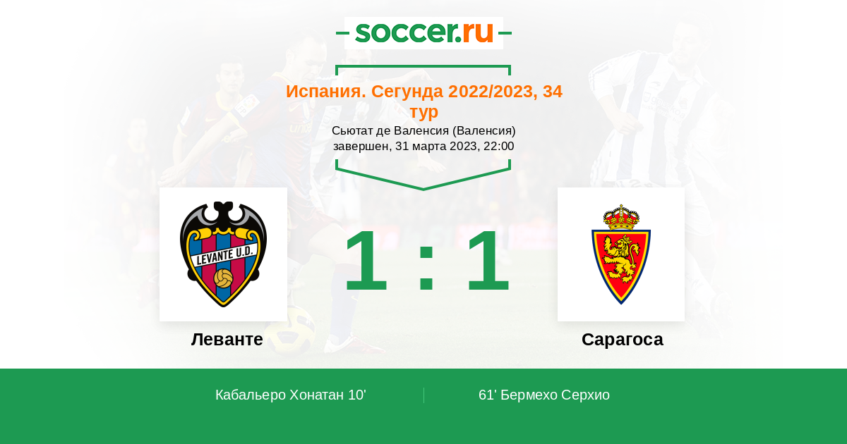 Протокол матча Леванте против Сарагоса