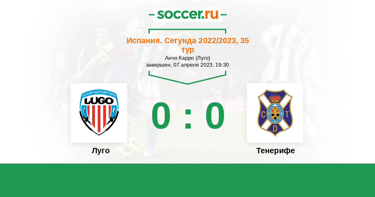 Протокол матча Луго против Тенерифе
