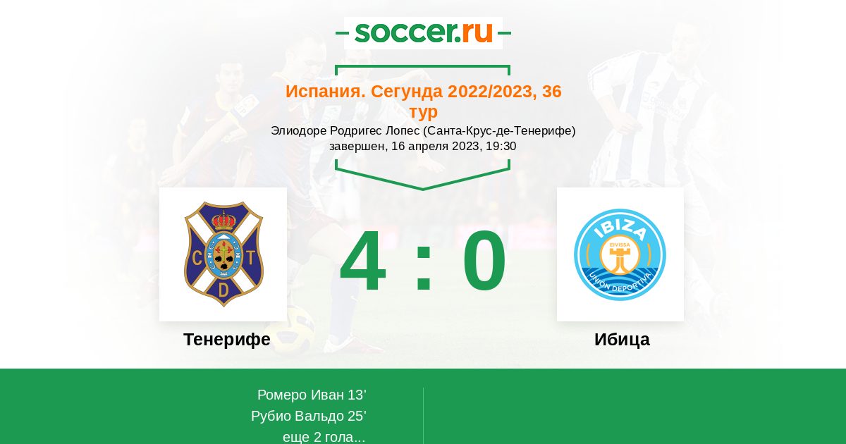 Протокол матча Тенерифе против Ибица