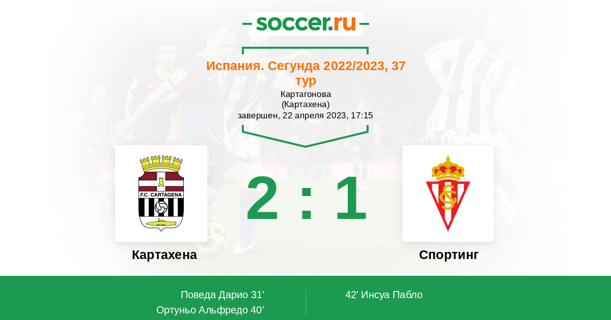 Протокол матча Картахена против Спортинг