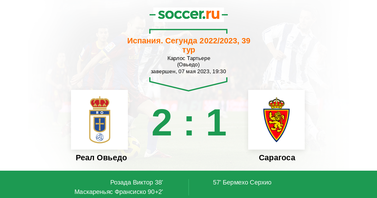 Протокол матча Реал Овьедо против Сарагоса