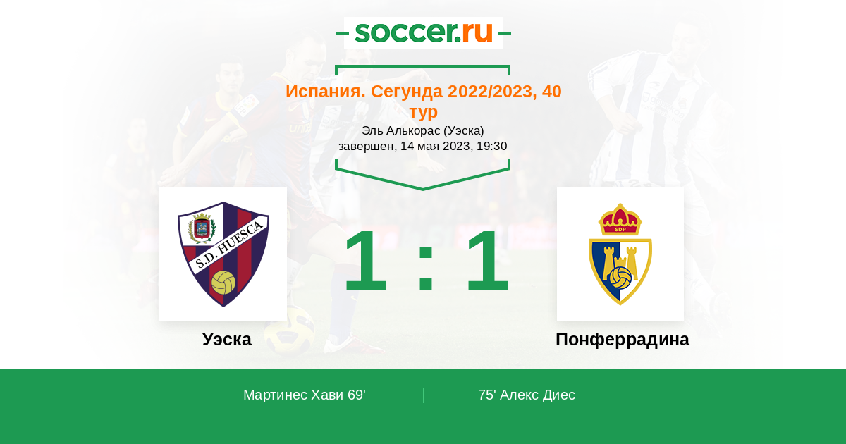 Протокол матча Уэска против Понферрадина