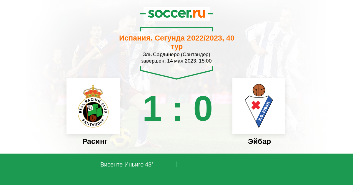 Протокол матча Расинг против Эйбар