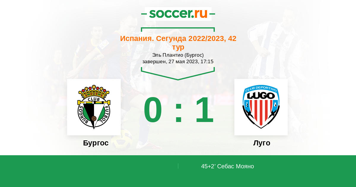 Протокол матча Бургос против Луго