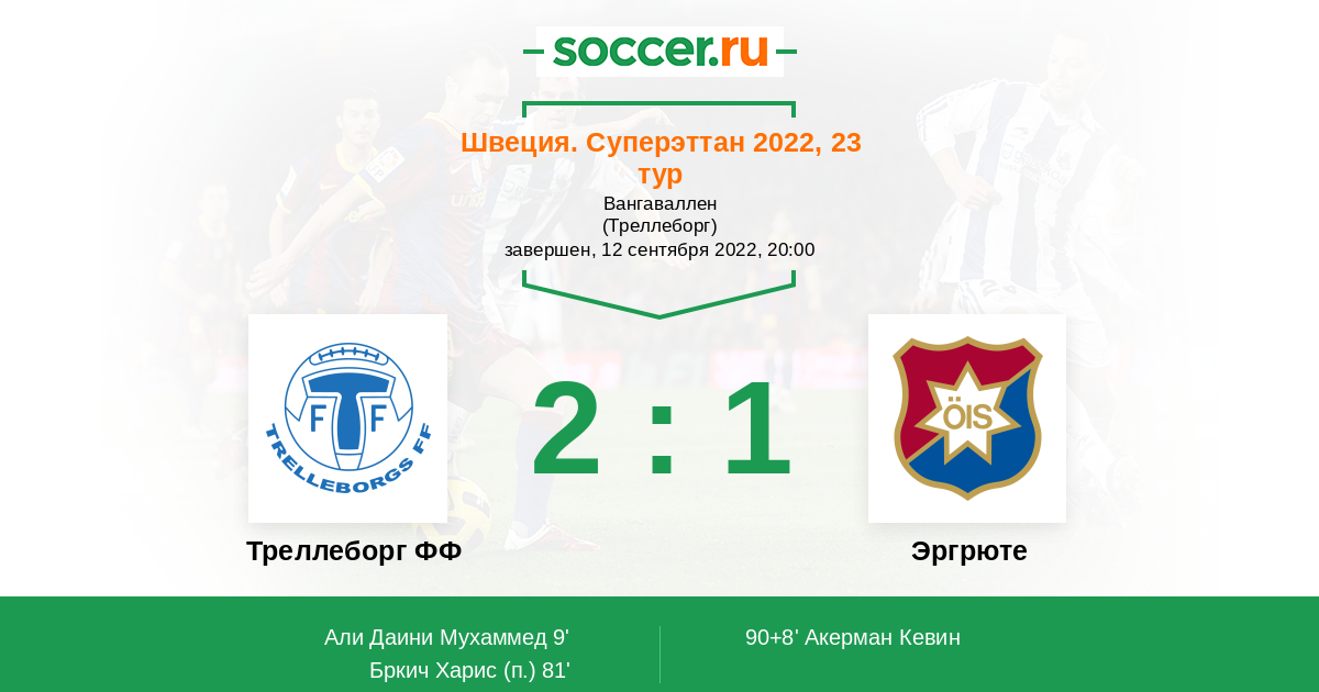 Протокол матча Треллеборг ФФ против Эргрюте