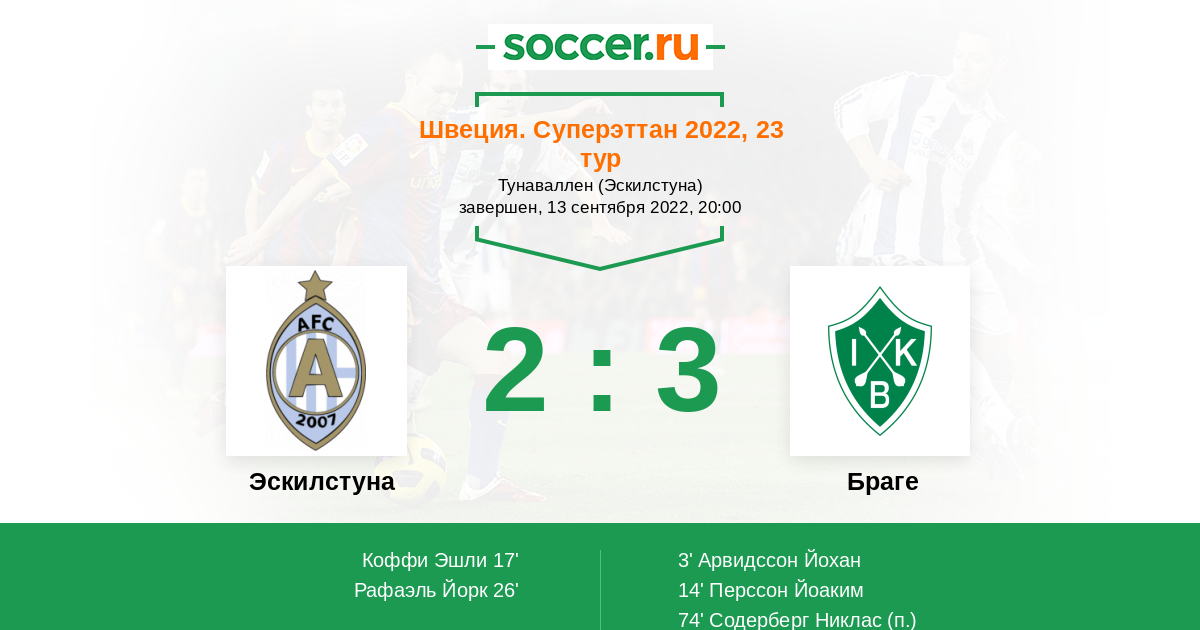 Протокол матча Эскилстуна против Браге