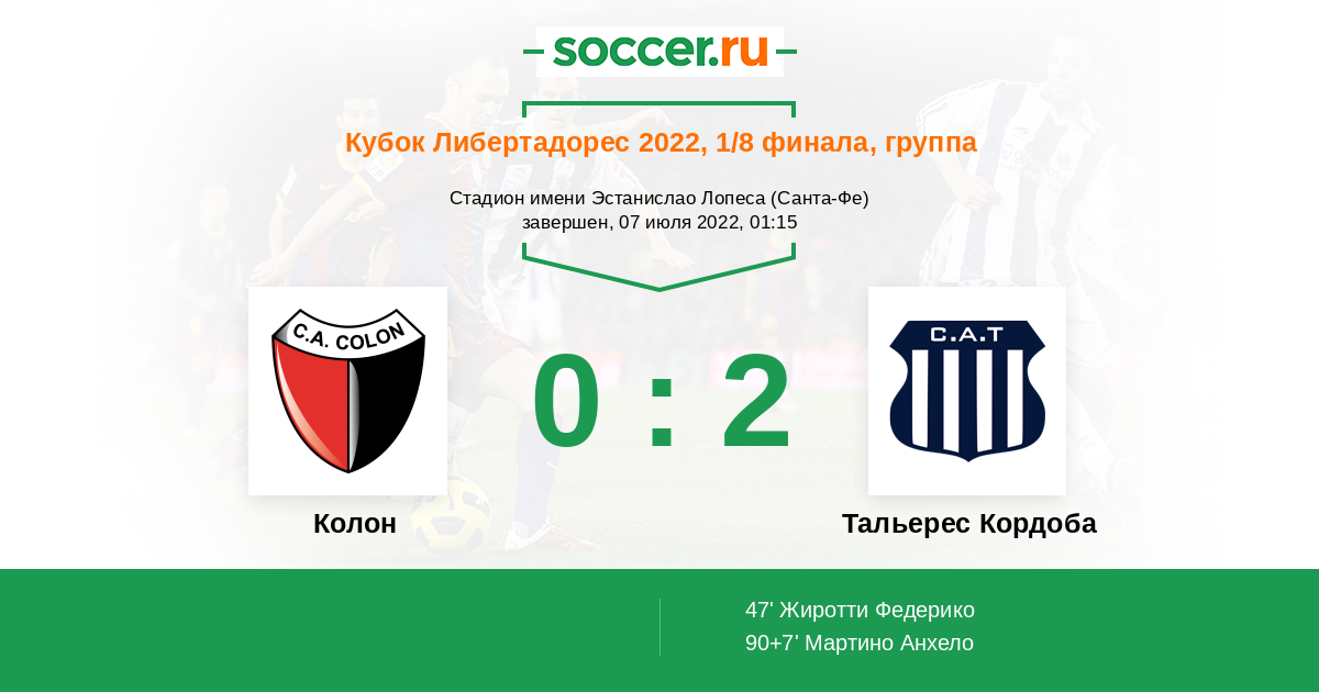Протокол матча Колон против Тальерес Кордоба