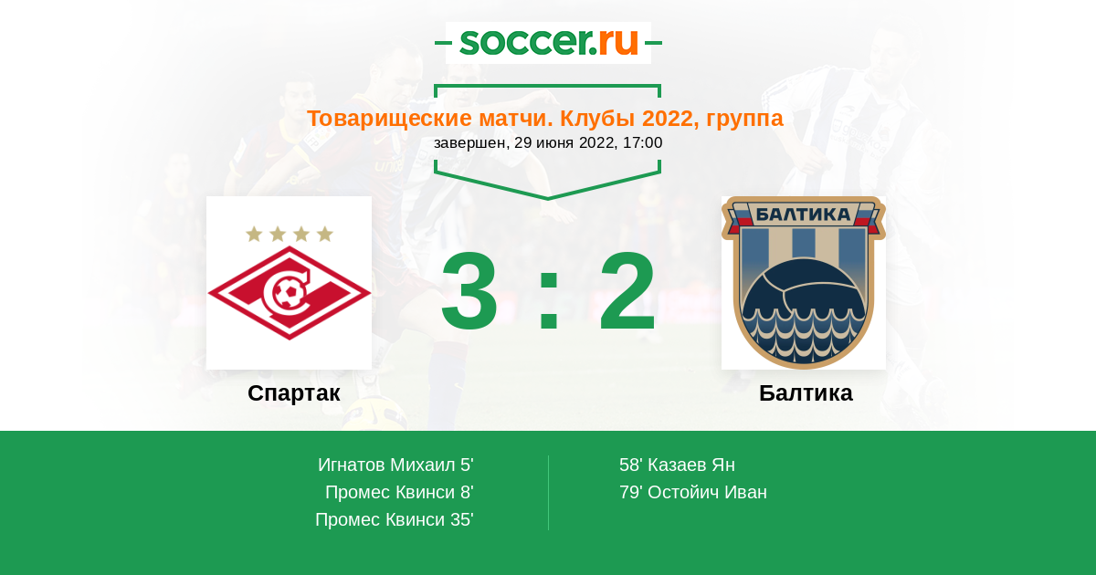 Протокол матча Спартак против Балтика