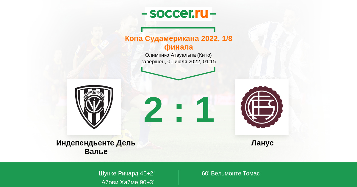 Протокол матча Индепендьенте Дель Валье против Ланус