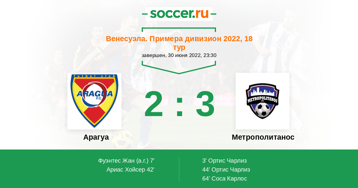 Протокол матча Арагуа против Метрополитанос