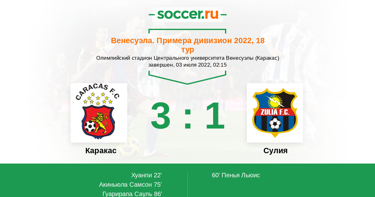 Протокол матча Каракас против Сулия