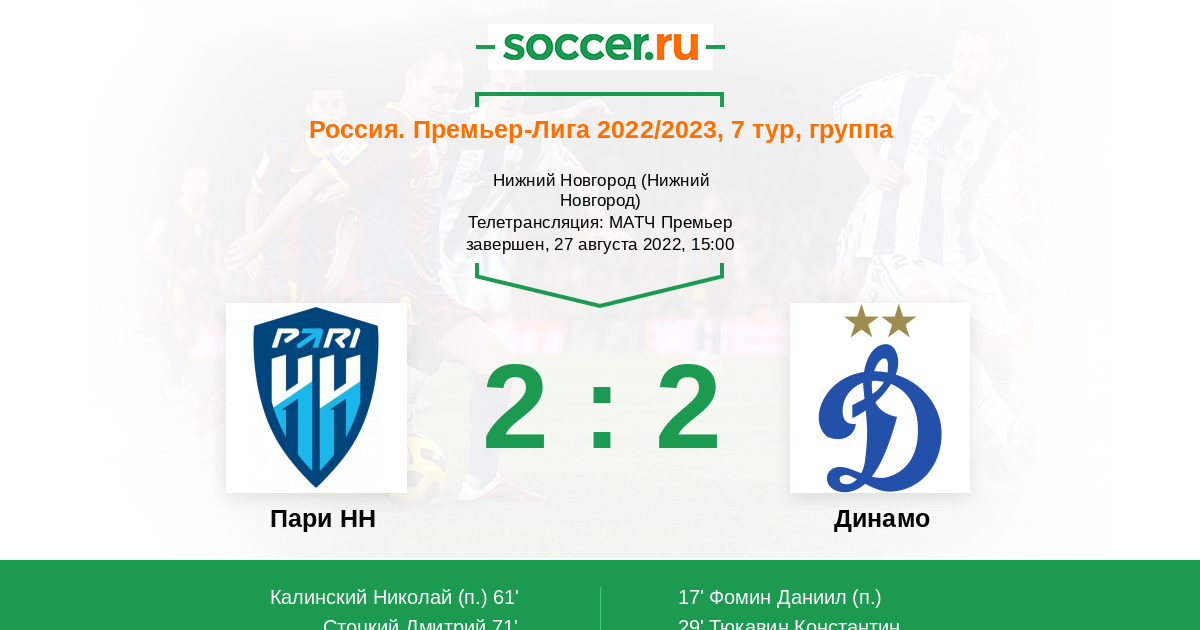 В данном противостоянии предпочтение отдам московской команде ФК Динамо. Хорошая сбалансированная команда, есть ряд игроков которые очень хорошо проявили себя в игре со Спартаком и конечно потрепают и оборону Пари НН.