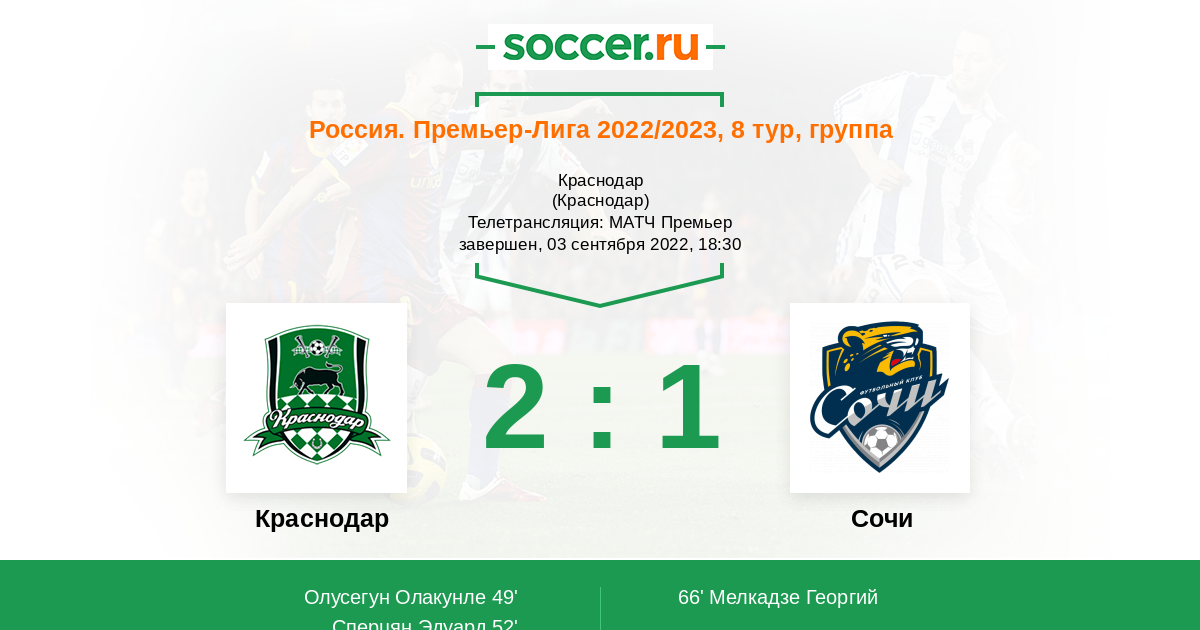 «Сочи» не только географический сосед, но и по турнирной таблице. «Краснодар» — четвёртый, а «Сочи» — пятый. За последние пять матчей в чемпионате три победы у сочинцев. В Кубке России сейчас проиграли «Уралу», но вторым составом. Там всё ещё можно поправить.