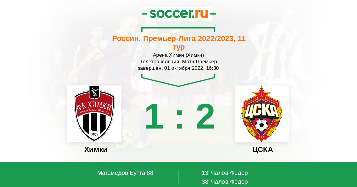 Протокол матча Химки против ЦСКА