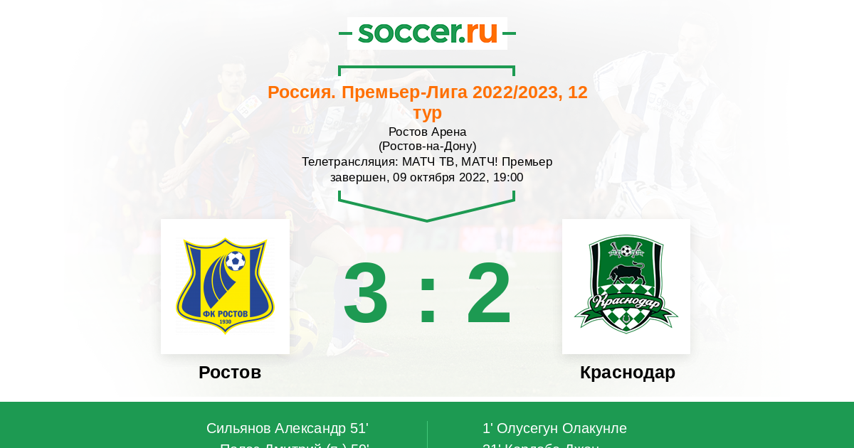 Протокол матча Ростов против Краснодар