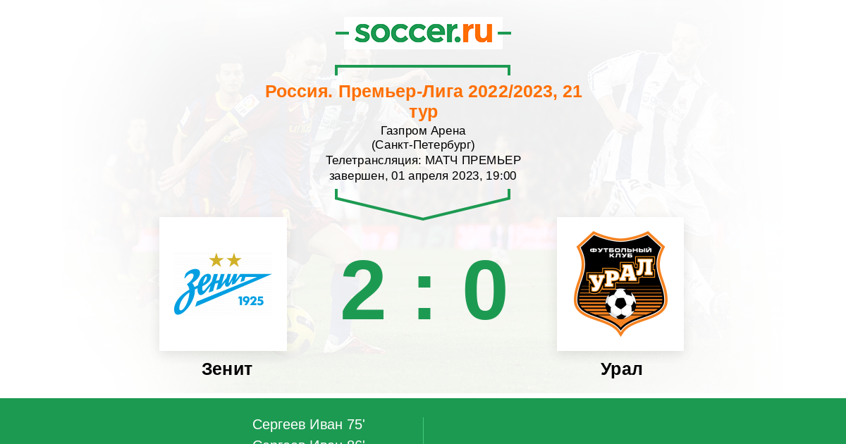 Протокол матча Зенит против Урал