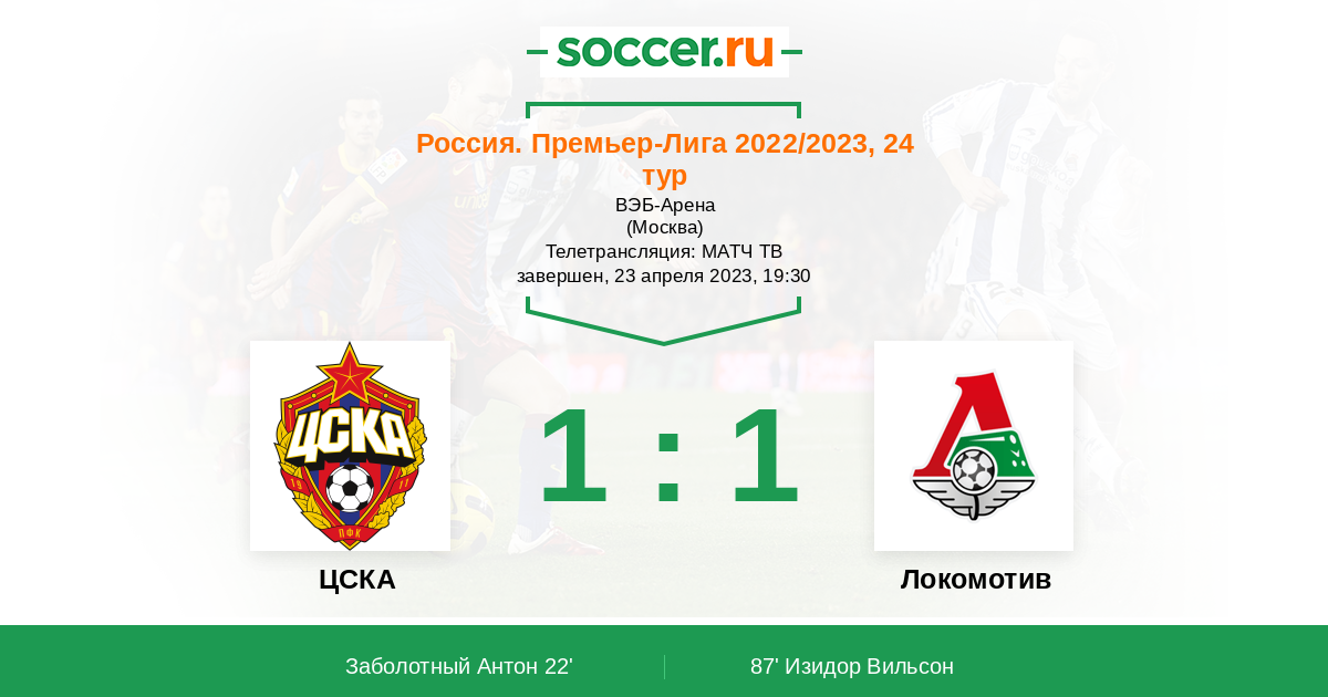 Протокол матча ЦСКА против Локомотив