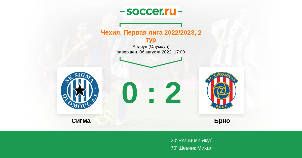 Протокол матча Сигма против Брно