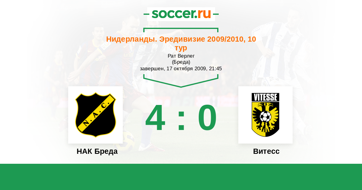 Нидерланды. Эредивизи 13.04.2010 Витесс Логотип футбольный клуб Витесс (Арнем) 1:1 Логотип футбольный клуб НАК Бреда НАК Бреда
