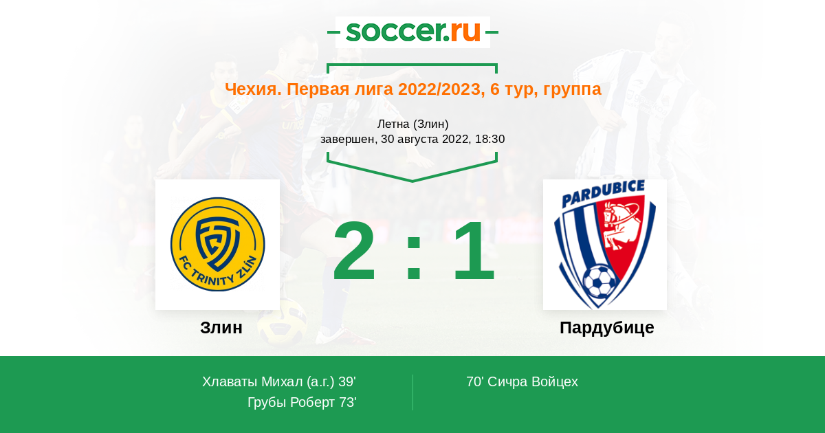 Протокол матча Злин против Пардубице