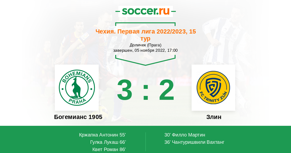 55' (1:2) Кржапка Антонин (34) (Хронек Петр (7))