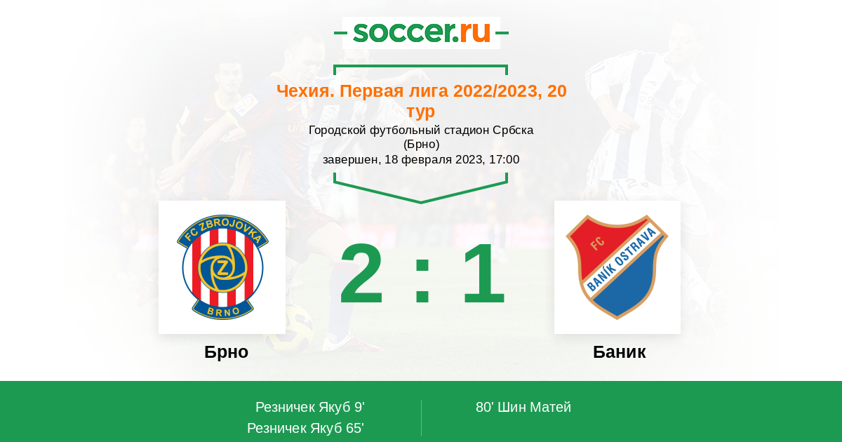 Протокол матча Брно против Баник