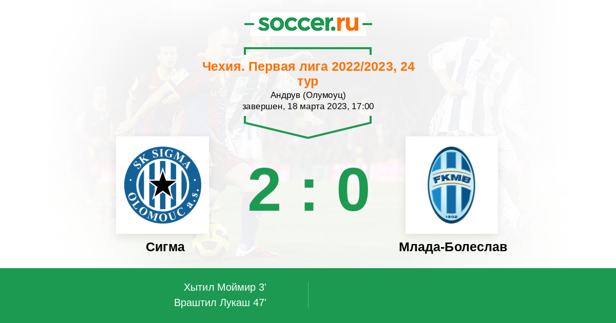 Протокол матча Сигма против Млада-Болеслав