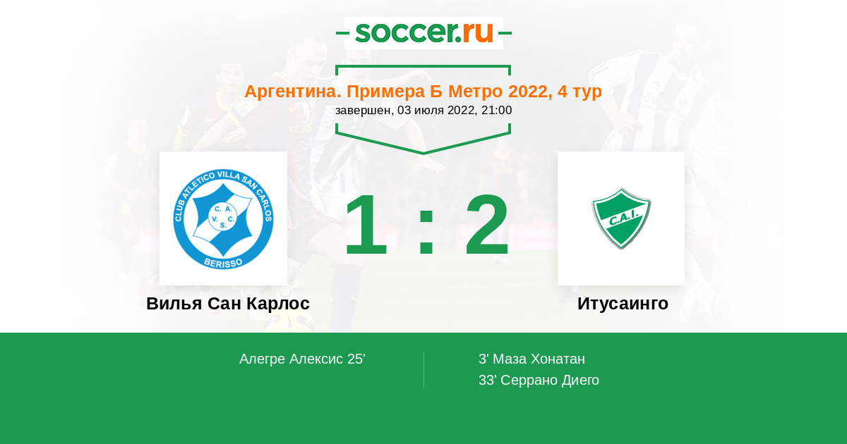 Протокол матча Вилья Сан Карлос против Итусаинго