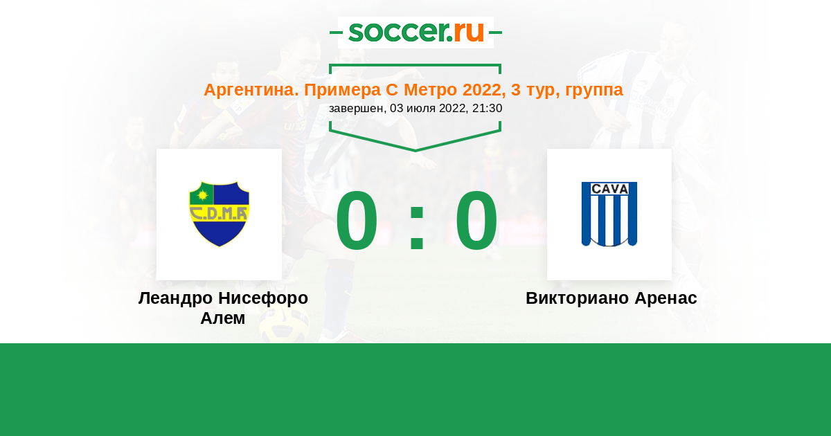 Аргентина. Примера С Метро 07.08.2021 Викториано Аренас Логотип футбольный клуб Викториано Аренас 3:0 Логотип футбольный клуб Леандро Нисефоро Алем (Буэнос-Айрес) Леандро Нисефоро Алем