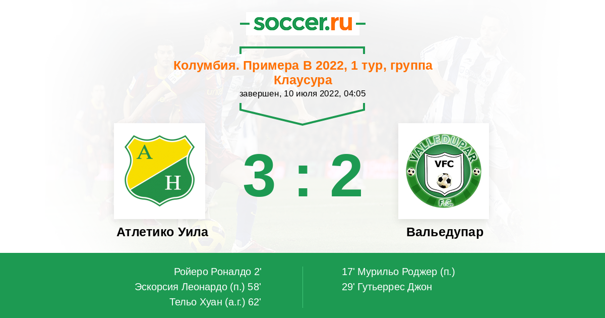 Протокол матча Атлетико Уила против Вальедупар