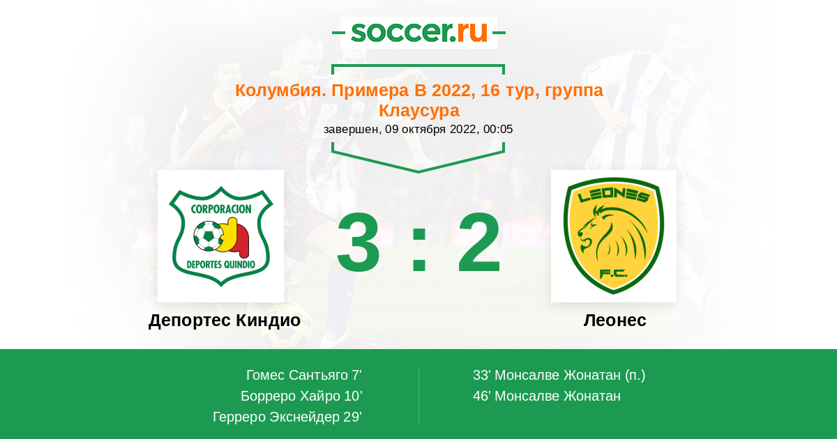 Протокол матча Депортес Киндио против Леонес
