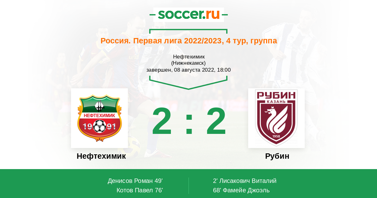 Протокол матча Нефтехимик против Рубин