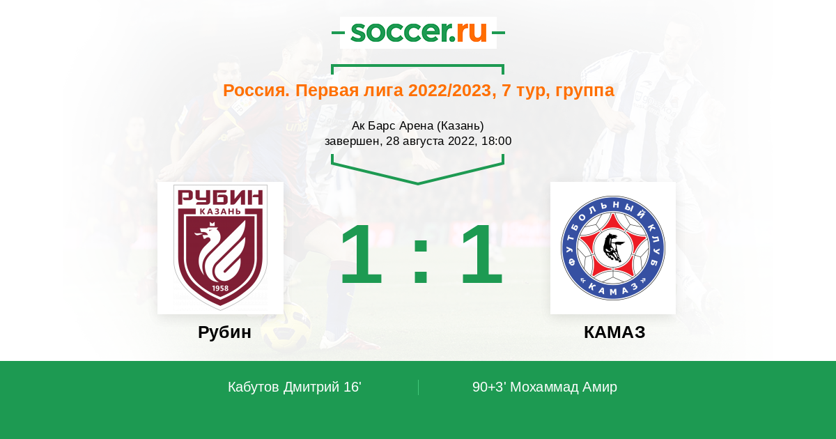 Протокол матча Рубин против КАМАЗ