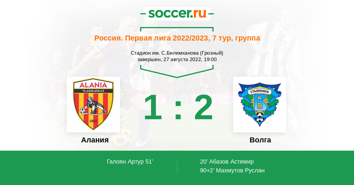 Протокол матча Алания против Волга